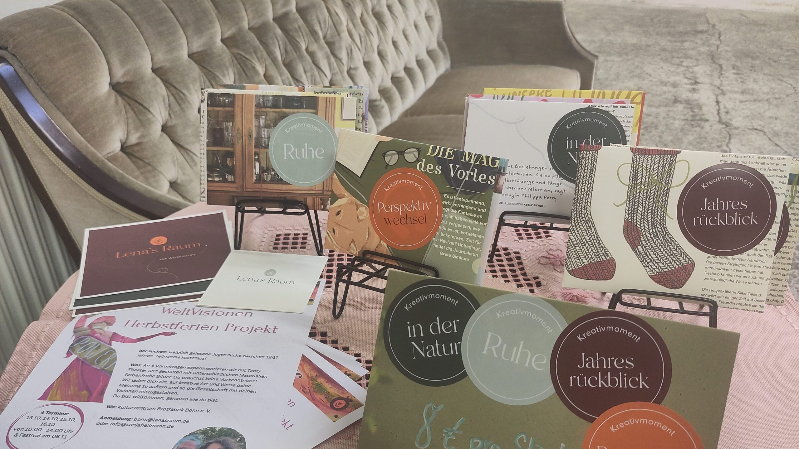 – Mitgliedschaft in Signalgruppe (Messenger wie WhatsApp) für den kreativen Austausch miteinander und Rückfragen zu den Kreativmomenten oder Reflektionsmomenten.